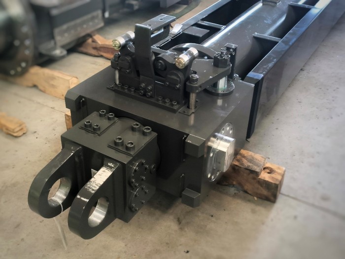 雙側(cè)銷插銷機(jī)構(gòu)伸縮油缸(600V8)在特力液壓公司完成試制,并經(jīng)測試合格,缸銷與臂銷運(yùn)行正常,動作靈活,各項(xiàng)指標(biāo)符合設(shè)計要求,標(biāo)志著新一代雙側(cè)銷插銷機(jī)構(gòu)成功下線。